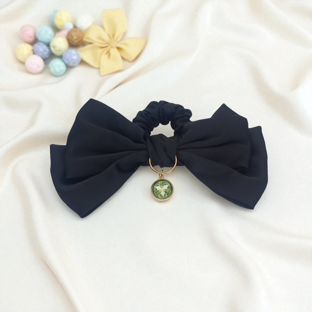 垂井店1階ショップでもご好評をいただいております、ハンドメイドアクセサリー「Wisteria」より、竹中半兵衛ゆかりの九枚笹をあしらったヘアゴムが入荷しました。●シンプルなブラックリボンに、九枚笹の家紋チャームが揺れる上品なデザインです● チャームは固定タイプのため、常にリボンと一緒に楽しんでいただけます●髪をまとめるだけでなく、手首に付けてブレスレット感覚でもご使用いただけます